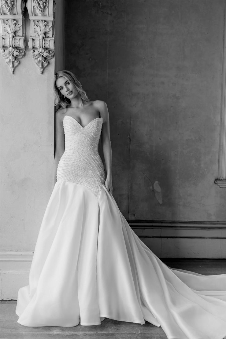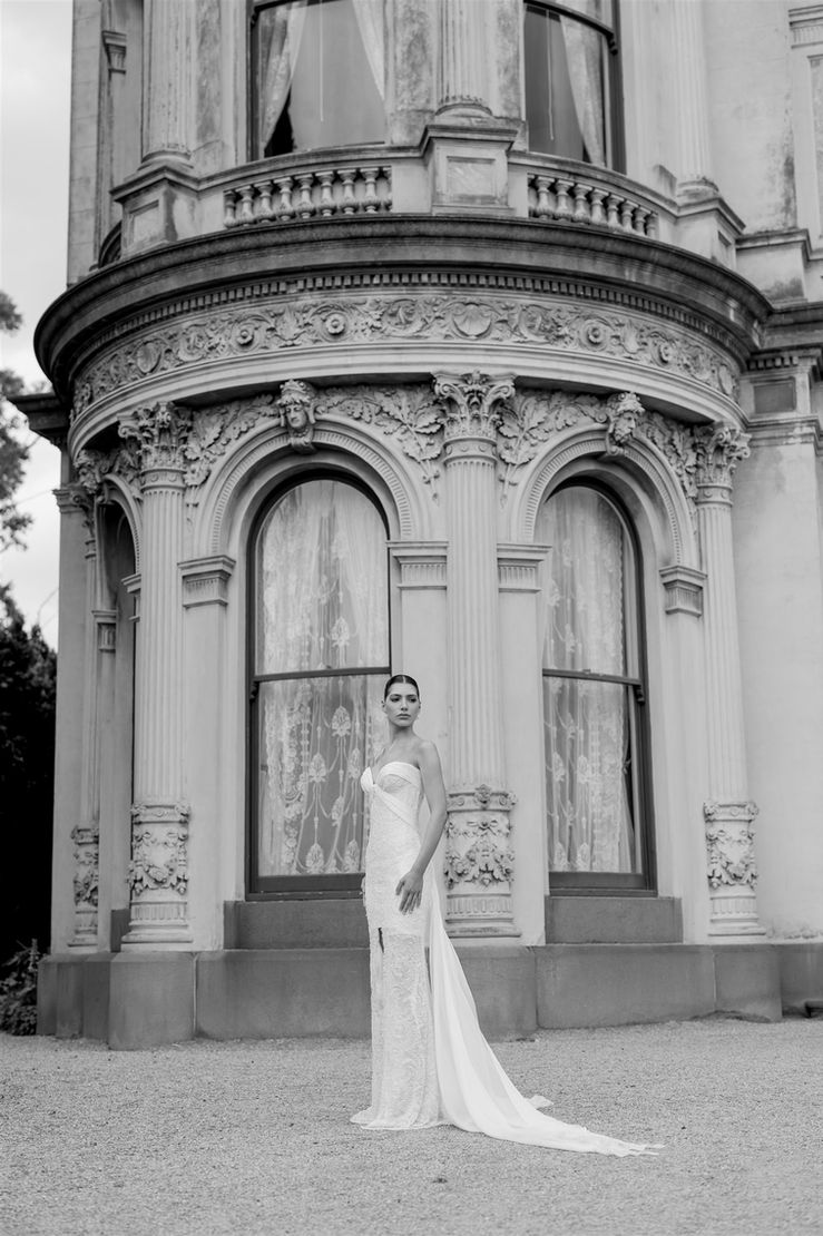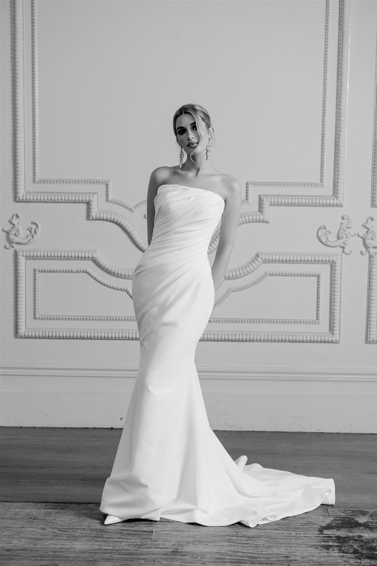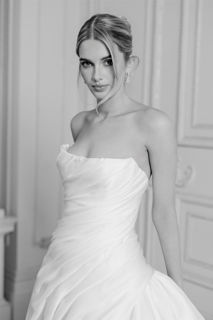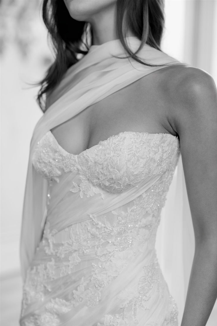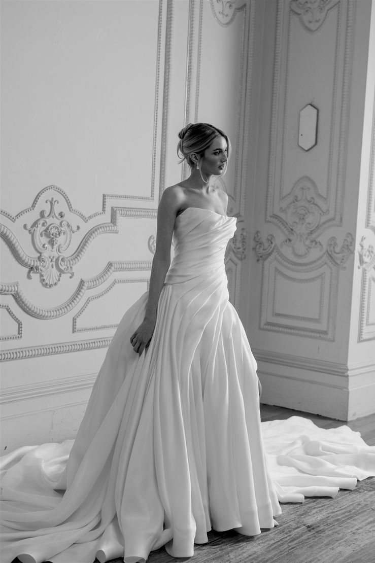 Redefining understated sophistication, Sophia showcases Antoinette Fusillo’s signature draping with impeccable finesse.